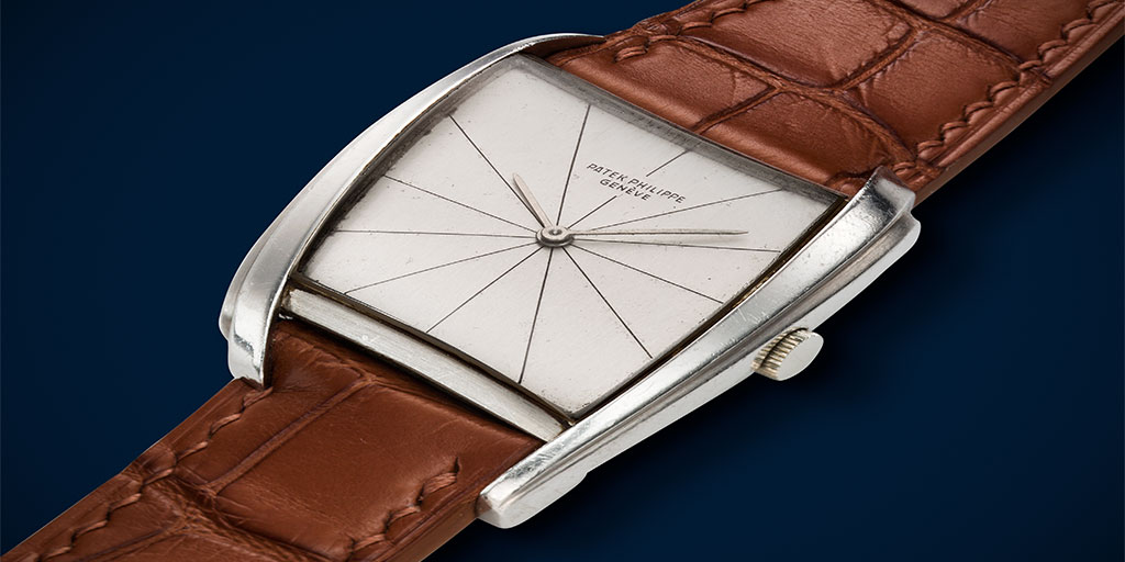 Rarer still, and with an ever-increasing price tag is the ref. 3424, an asymmetrical masterpiece by Gilbert Albert. Presented at the 1959 Basel Fair, the rhomboid shape of this watch caused a sensation. Gilbert Albert completely re-invented the way that Patek Philippe and other companies looked at watch design. A watch case was no longer round or rectangle, but asymmetrical and triangle. The two-piece case of the ref. 3424 was made by Markowski (Geneva key 8), a case maker that collectors are increasingly looking for. Made in yellow, pink, white gold or platinum, relatively few have come onto the market for sale. Way back in 2020, one of these beauties in platinum languished on our website for around $200,000. Today, that same watch would probably fetch close to $1 million at auction. During the 1950s and 1960s, Albert taught people to look at watches differently, today, people are following his lead.