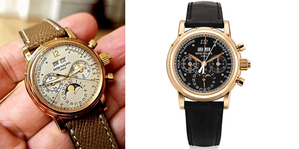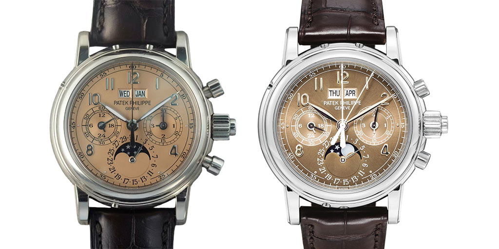 Ref. 5004 with pulsation dials. Image credit: @only_therarest (left), Sotheby’s (right)