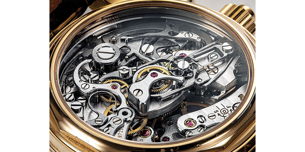 Because it adds an entire mechanism to control a second chronograph hand, a split-seconds chronograph is far more challenging to manufacture. The main difficulty lies in managing friction and energy so the split-seconds hand can be clamped and released without disturbing the main chronograph, affecting the amplitude, or compromising the reliability of this sensitive mechanism.