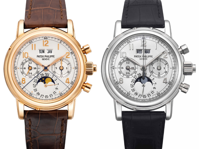 Ref. 5004R-018 and ref. 5004P-022 with black dials. Image credit: Christie’s, Sotheby’s