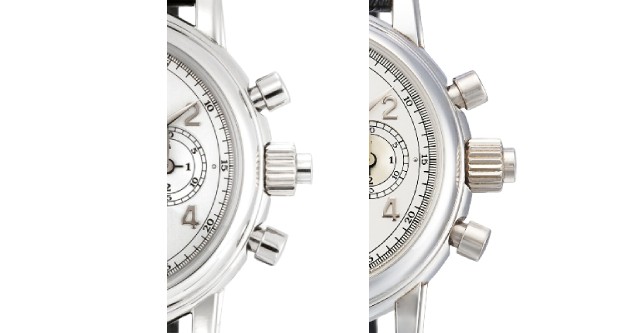 Left: 1st generation short hands, small crown. Image credit: Phillips Right: 2nd generation: long hands, large crown. Image credit: Christie’s