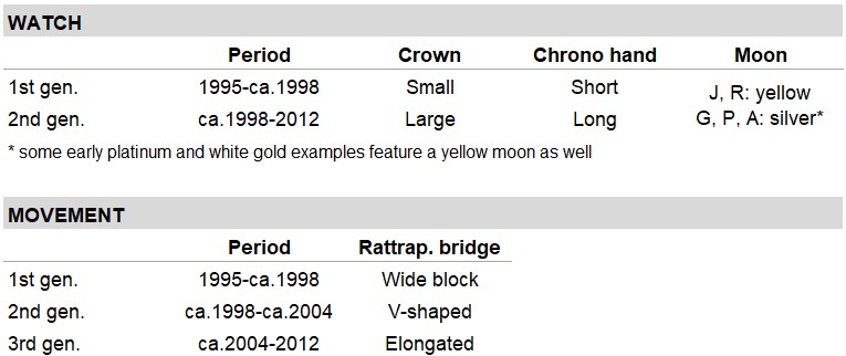 Although introduced at Baselworld in 1994, the first models were only delivered in 1995. From approximately 2000 to 2004, production nearly ceased while the movement was being reworked. During this period, it was even speculated that the model had been discontinued. After 2004, production resumed and increased significantly.