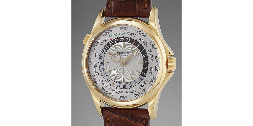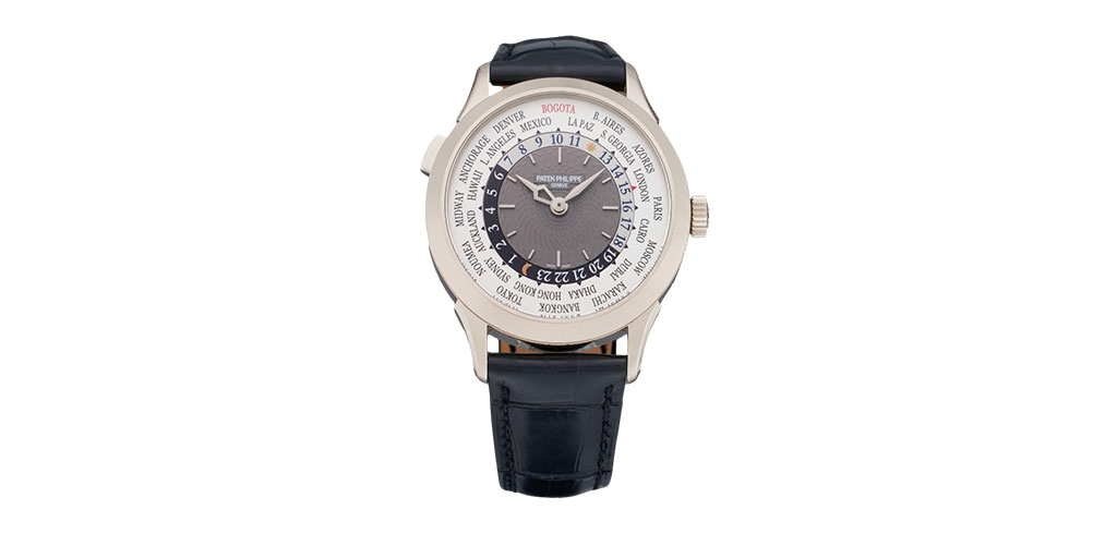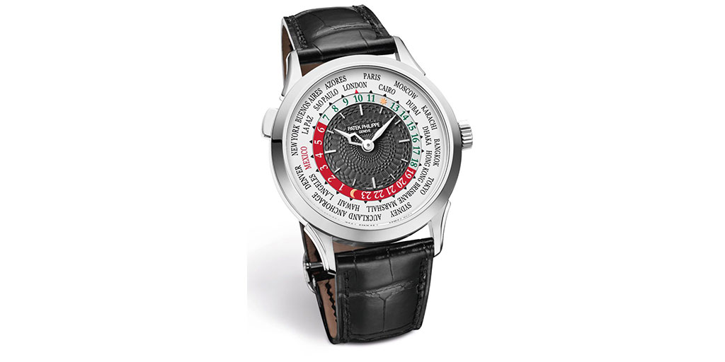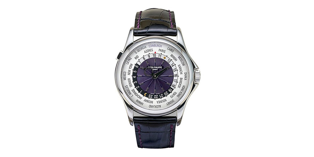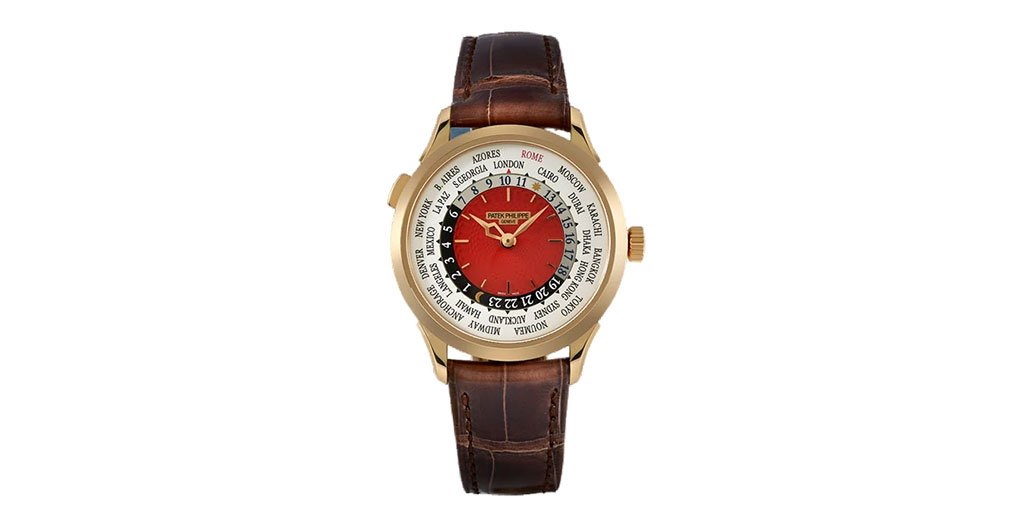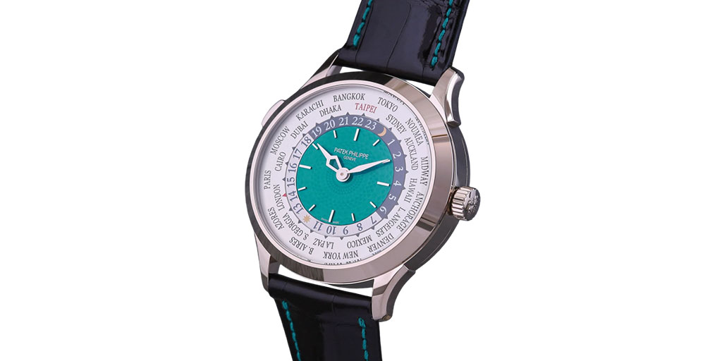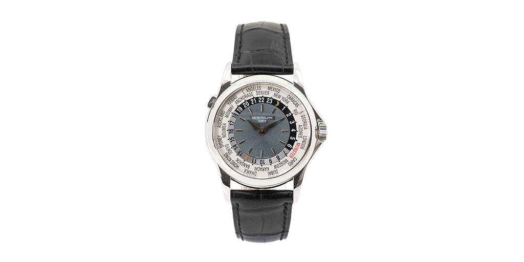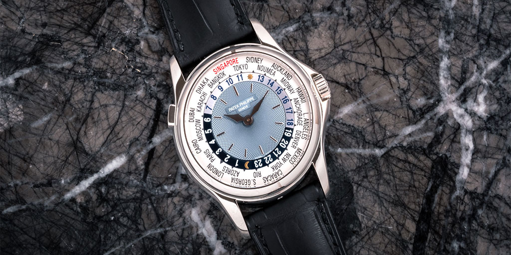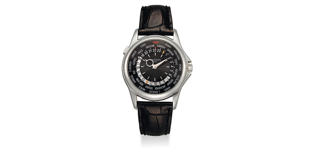 The very first retailer anniversary World Time was born from the friendship between Thierry Stern, president of Patek Philippe, and Dr. Henry Tay, president of The Hour Glass, one of the leading watch retailers in Southeast Asia. They chose the ref. 5110 World Timer in platinum to commemorate the 25th anniversary of The Hour Glass retailer. Twenty-five pieces were made, each featuring Singapore in red lettering on the city ring (in place of Hong Kong).