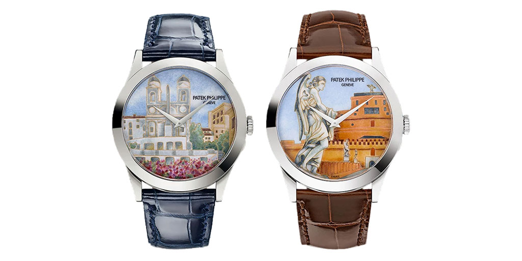 Celebrating Rome, home to one of the most important and oldest retailers, Hausmann & Co., required a beautiful tribute to the Eternal City and its charming places. The “Piazza di Spagna” (ref. 5098G-081) displays the Church of Trinità dei Monti, surrounded by the azalea flowers adorning the famous steps during springtime. The “Castel Sant’Angelo” (5089G-082), an iconic place in the history of Rome, depicts one of the statues of the bridge in front of the castle, known as “Angel of the Plague”. Both are engraved with “Hausmann & Co. 1794-2019” on the back.