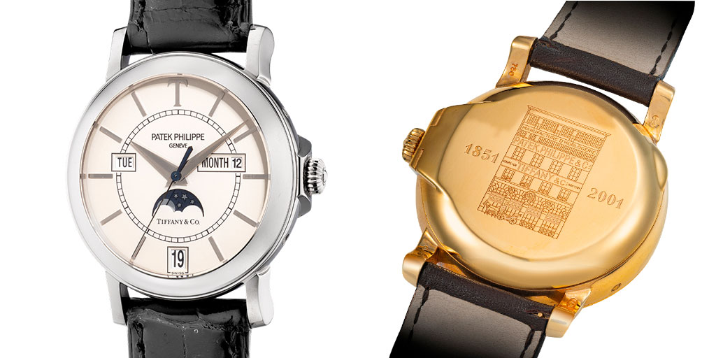 Tiffany & Co. needs no introduction. One of the most prominent retailers and jeweler in the world it was founded in 1837—two years before Patek Philippe—and the relationship with the Genevan manufacture began in 1851, when it became its first exclusive agent in North America. To mark the 150 years of collaboration in 2001, the first limited edition for a U.S. retailer was created by Patek Philippe: a unique case and a unique movement resulting in a unique ref. 5150, the “150” being a clear nod to the anniversary. The model features a 36mm officer-style case, reminiscent of ref. 3960J created for Patek’s 150th anniversary in 1989 and the movement builds upon the newly introduced annual calendar, notably displaying the month as a numeral. The silver dial prominently features an oversized “T” at 12 o’clock and the famous Tiffany & Co. signature at 6 o’clock. As a nod to its American heritage, the day and date are shown in line apertures.